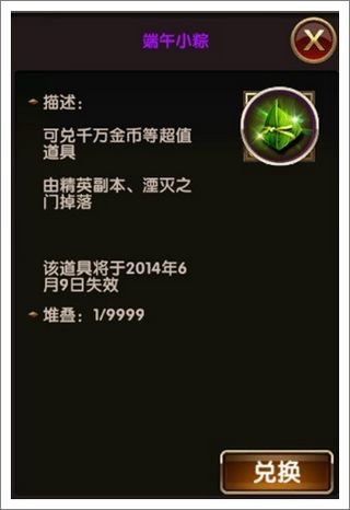 活动期间内,玩家们达到20级之后的精英副本、湮灭之门、时空漩涡后,将不定时产出热腾腾的【端午小粽】哦!【端午小粽】可用于兑换紫色符文石、橙色符文石、经验符文、巨量金币等呢!