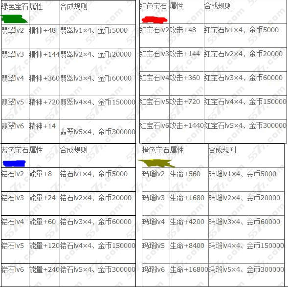 合成一颗红色的6级宝石,玩家需要5级的红宝石4颗,和30W金币才能完成升级,所以平民级的玩家要想获得6级的宝石是比较难得,每级宝石的属性是上一宝石等级的2倍,所以要想获得属性好的宝石,就系要要有较多的原材料,才可以进行合成。