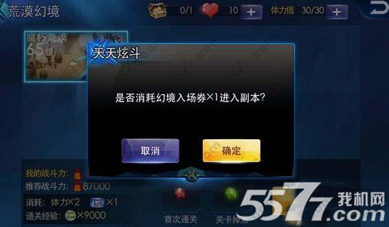 3、进入幻境入口,选择幻境副本,之后系统会提示需要消耗一张幻境入场券,确认以后就能顺利进入幻境副本。