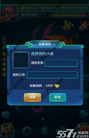 玩家可以消耗1000元宝创建“洞府”(该元宝将成为洞府元宝),并设定个性化的名称、徽章、口号。