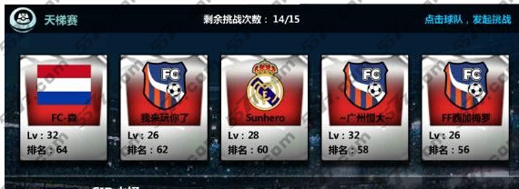 天梯赛可以挑战排名在你之前的玩家,每天可以总共挑战15次点击其他们家的球队尽可以开始进行挑战了,不过在挑战之前最好先换好你的阵型以及教练,因为点击之后就会立刻开始,对此马虎不得。挑战结束后可以在排名榜中看到自己的排名,以及好友中排名靠前的玩家排名。