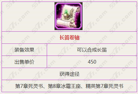 长笛卷轴是一把紫色的武器,在刀塔传奇中算是一把比较高级的武器。武器攻击力较高,同时还可以变成一直长笛来使用,玩家在副本第7章死灵书、第8章冰封王座中可以获得。