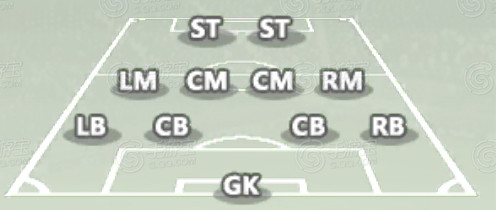 442(游戏中为组织阵型):巴西、英格兰、阿根廷等实用的现代最求最基本最有代表性的阵法,此阵法最为平衡,最有效果的阵型,主流球队首选。