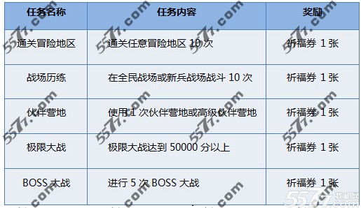 游戏中祈福券主要的获得方式为日常任务,下面图表为你详细解析!
