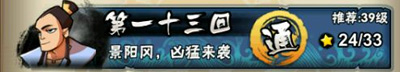 第十三回景阳冈凶猛来袭推荐等级为39,只需要稍微注意,通关是非常简单是事情,这关可不单单只是打老虎哦。