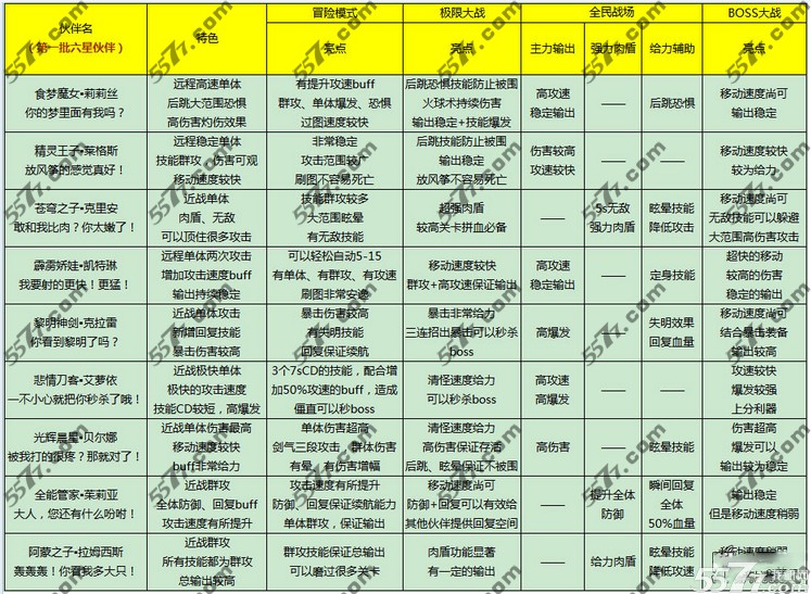 下面根据它们的能力,小编为你相信解析它们在冒险模式、极限大战、全民战场、BOSS大战的优劣,然后排名!具体如下图: