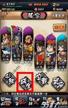 在15级时,转生系统才会开启,玩家才能使用转生系统给武将转生。