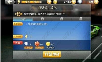 2、建议玩家用积累的钻石去购买一辆S级或是RA级的赛车,这样能帮助你更好的来刷取钥匙。