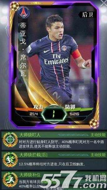 3、萨穆埃尔三个技能相得益彰,转会费511万。大师级盯人可以死死的防守住对方的进攻,有效的保护前锋,技能拦截有8.5%的概率终结对方进攻。