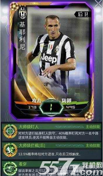6、基耶利尼2832万,技能同样是大师级的技能,不过看穿这个技能并不是大师级,但是有前2个大师级技能就可以表现出他在球队中的价值了。