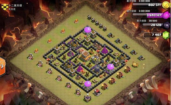 3.作为这种外观相比对称而且较为美观的阵型,相传度更高。更加重要的是,这种阵型很适用目前的部落战中,只要稍微做些调整就是一个非常好的8本护本阵型: