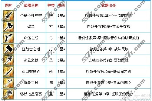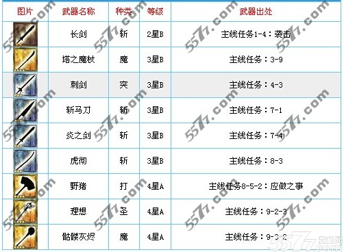 游戏中武器主要通过任务来获取,那么我们首先来看看各种任务获得武器的属性和任务内容!