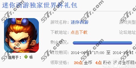 迷你西游世界杯礼包内容: