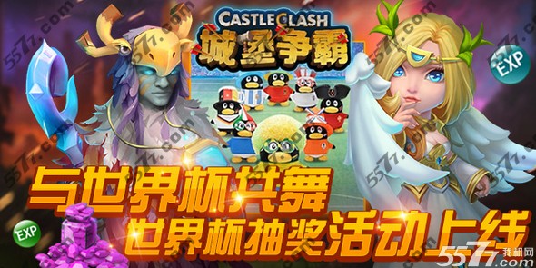 世界杯是一个全球性的盛会,无数人的激情与梦想在这里被点燃,在这个欢庆期间,腾讯第一休闲战争手游《城堡争霸》也将为玩家带来特别欢乐活动——世界杯抽奖活动,免费抽取世界杯公仔、紫色英雄雷神、海量宝石等丰富而诱人的奖品。