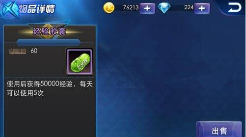 经验胶囊使用后可获得50000点经验,每天可以使用5次。