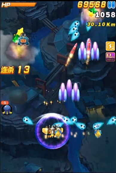 球福宝贝能够发射多个具有跟踪效果的足球,配合它变态的攻击力可以轻松干掉敌机和boss,完全掩盖了主机的光芒。