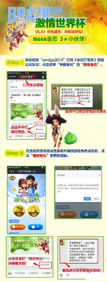 《全民打怪兽》官方微信米娜为大家送上专属福利啦,订阅官方微信(qmdgs2014),成功绑定游戏角色,小伙伴们即可100%领取微信专属礼包。