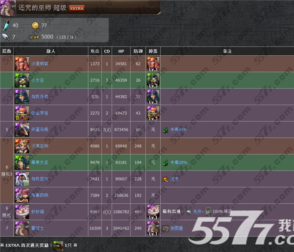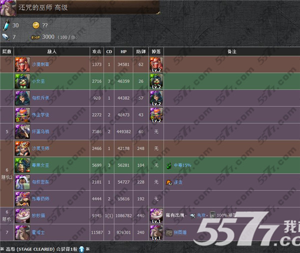 毒果女巫 攻9479 CD3 HP93181 防104 技能:中毒30%