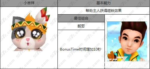 第六组,A级宠物小吉祥和毅哥的组合,在小吉祥和毅哥组合的时候可以激发一个他们的组合技能,使毅哥获得磁铁效果可以吸取周围所有的东西,并且可以增加{BONUSTIME}10秒种。