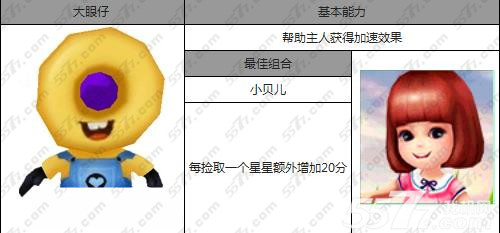 第八组,S级宠物大眼仔和小贝儿的组合,当大眼仔和小贝儿组合的时候,可以获得一个组合技能,使得小贝尔获得一个加速效果,并且让小贝儿每捡取一个星星都能额外的获得20分加成。