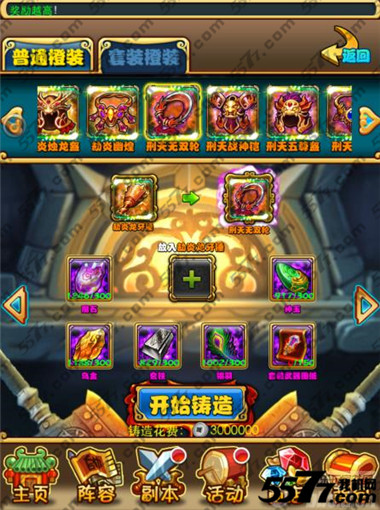 玩家进入游戏后,在游戏主界面就会看见“寻龙探宝”选项,然后玩家点击就可以进入到橙装铸造系统中,玩家可以在副本关卡或是商城中获得橙装碎片,消耗橙装碎片可以将紫色装备铸造成为橙装,不过玩家有些不必要的紫装也可以用来直接分解,然后就可以获得橙装碎片。