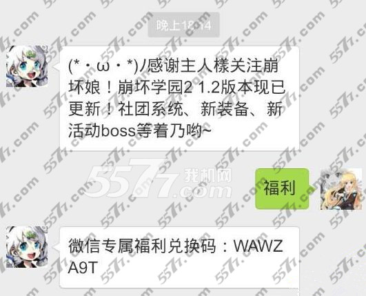 其中共有5种兑换码,分别有100个水晶,白银喵王、钻石喵王、黄金喵王三种猫王各3个,领取该活动福利需要玩家关注崩坏学园官方微信,在微信中回复【福利】,随之系统就会回复福利代码,这是玩家就可以用代码去游戏中兑换福利了。