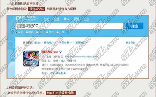 新浪微博中搜索 锁链战记CC 即可找到锁链战记官方微博
