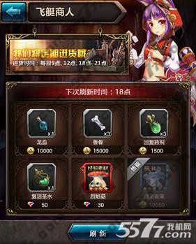 在飞艇商人处,玩家可以用大量金币或少量钻石购买到稀有材料、高等道具、素材角色及强力角色碎片等高价值的物品,但飞艇商人每次只出售6种商品,每日9点、12点、18点和21点时才会刷新下一批,也就是说飞艇商人每日共计会出售约24种高质商品,各位玩家记得抓准时间去看看有什么适合入手的哟~