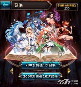 友情值召唤:每次需要耗费200友情值,基本召唤出的都是1星到3星的角色,还有可能召唤出经验素材、进化素材和技能素材类的角色,是除了剧情系统扫荡关卡外重要的“狗粮”获取方式。而友情值可以通过援助好友获得,在游戏中被好友指定作为援助者,可以获得一定的友情值,反过来自己在战斗中邀请援助者也可以获得少量的友情值。