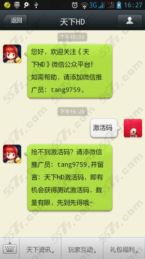 天下HD将于15日对外测试,不过官方号称只有很少很少的激活码放出,那么,让小编来教大家如何用微信抢吧!超级详细的哦!