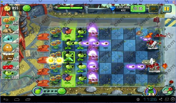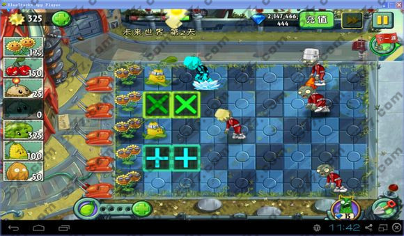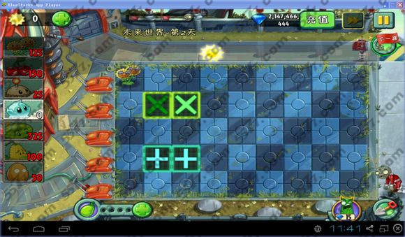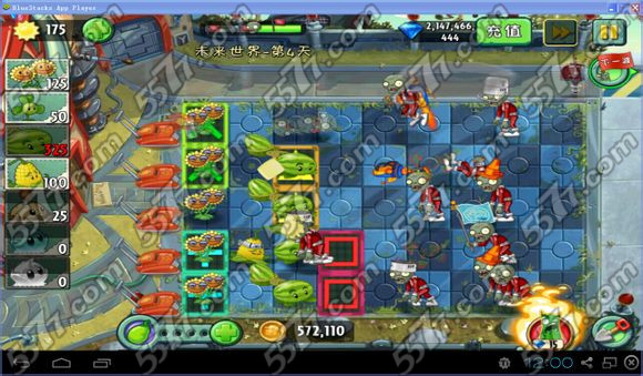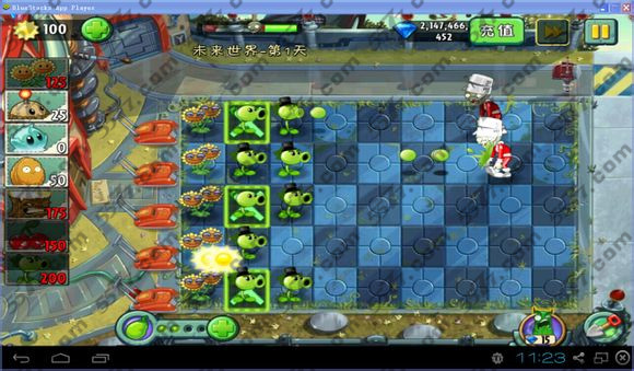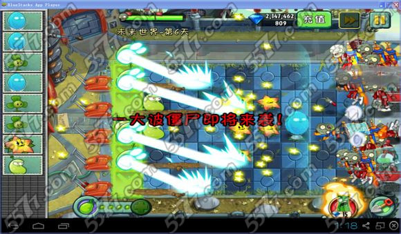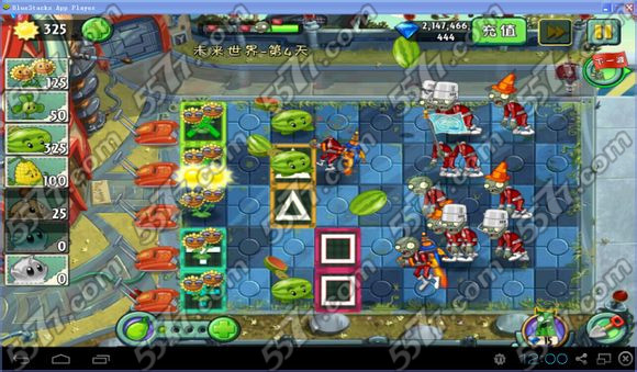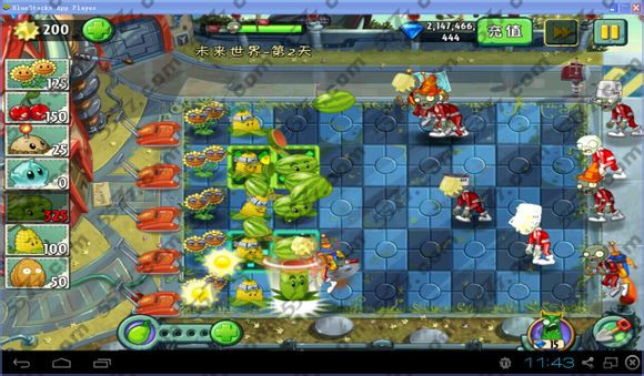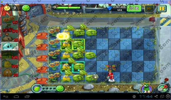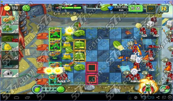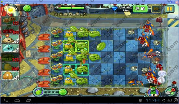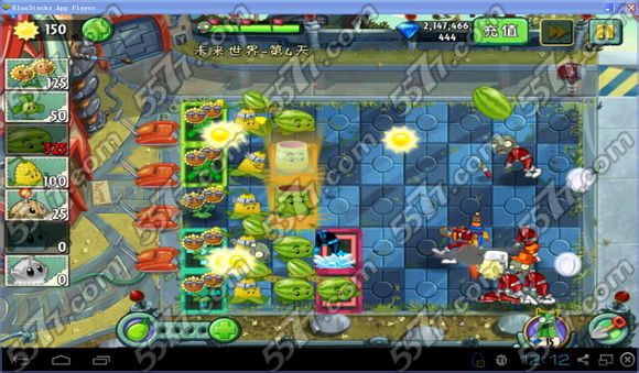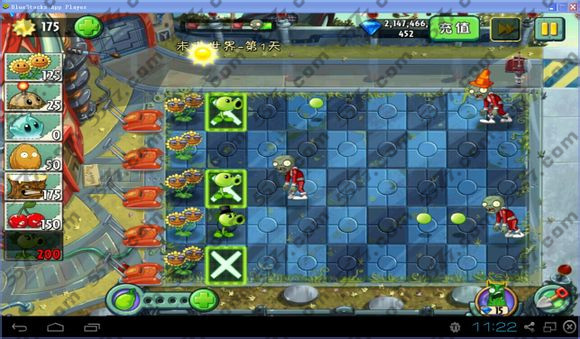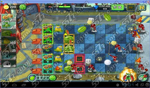 来谈谈植物的选择吧,西瓜大炮依旧是主力,相比第二天,多选了石化进来.