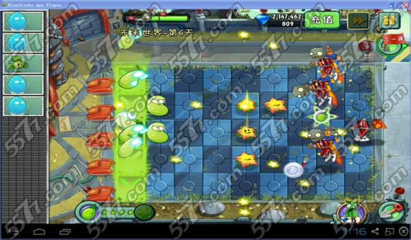 第六天又是一个特殊关卡,这一关使用激光大阵轻松过关,加强瓷砖相当的给力!
