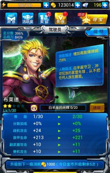 解锁布莱德还有升级布莱德,提升驾驶员的战力等等属性值哦~!