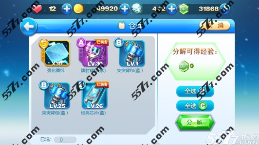 4、该模式适合在玩家装备太多的时候操作,选择完毕,点击分解即可完成操作了!那么玩家你就可以获得大量的强化图纸了!