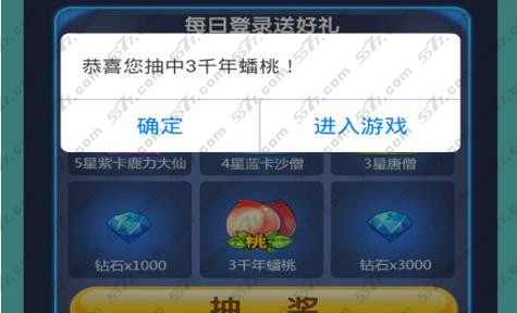 也有各种道具,像1000钻石啊,三千年的蟠桃以及3000钻石,要是抽到钻石那就发了。