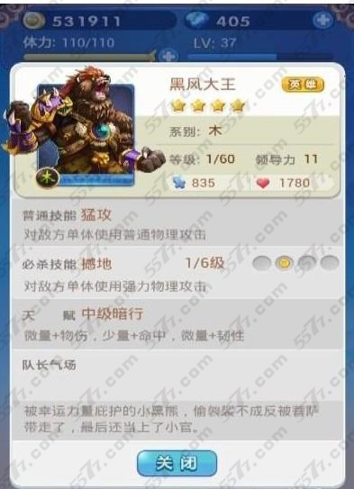 欢乐西游黑风大王是游戏中比较容易刷取到的一张卡牌,许多玩家感觉英雄卡牌没必要培养,那么黑风大王怎么样呢?下面小编来给玩家朋友介绍下欢乐西游黑风大王属性技能图鉴。