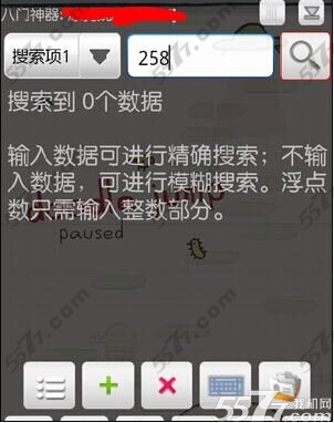4、在八门神器搜索栏搜索刚才查看的钻石或金币数量。点击开始搜索,会显示很多条搜索结果。