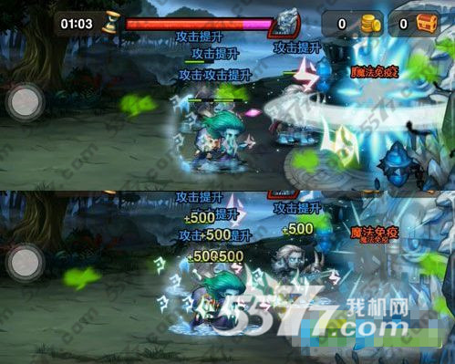 BOSS吃修补的致盲,后期可以保证队伍安全,修补的大爆发也不错。修补和先知的大技能在巫妖的减魔抗技能下正好够破盾,巫妖又可以清小怪。这下知道如何破盾了就可以开心的虐BOSS了。
