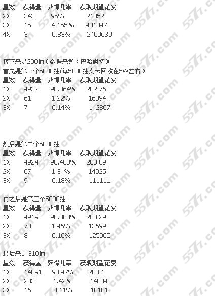 首先是2W抽的几率,数据基数不是很多,大概只找到361连抽的数据。