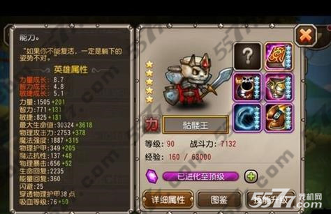 《刀塔传奇》中骷髅王作为一个前排肉盾是很多玩家的首选肉盾,在这次的90级开放之后骷髅王可以进阶到紫4了,紫4之后骷髅王得到了很大的加强,但是紫4只是一个过渡,橙色的骷髅王才是最强大的,今天小编就来给各位讲解一下骷髅王紫4以及橙色的装备及属性对比,希望对大家又说帮助。