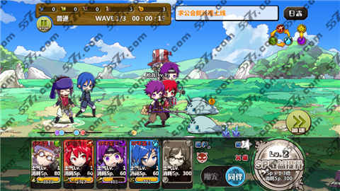 玩家在战斗的时候,需要掌握一定的通关技巧,明白游戏中属性相互克制的意思,然后安排小伙伴上场,建议玩家先把队长召唤上来,然后再去召唤其它的小伙伴,每次召唤小伙伴都会消耗一定的sp,小伙伴在攻击怪物的时候,sp值也会相应的增加,建议开启sp3,这样回复的速度会比较的快。