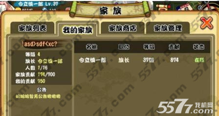 家族在16级左右开启。创建家族需要50万金币,也可以在家族列表中申请其他家族,被批准后进入家族。每天报到可以增加自己的家族贡献、获得体力,还能提高家族财富。除了报到,还可以通过捐献金币或钻石来快速获得家族贡献。家族达到3级后,开启家族商店,消耗家族贡献在里面购买一些高价值道具。