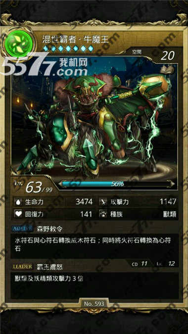 队长技能:能够将自己的符石转换城为木符石,还有将火符石进行心符石的转换哦~!它的主动技能则是比较简单的提升兽或者妖精的攻击!大家怎么看?