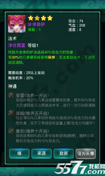 天赋25战意:净世霄雷(20%全体麻痹,封法术)