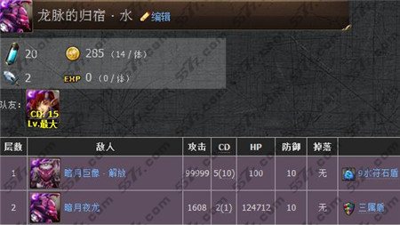 三属盾:同时消除水符石,火符石及木符石才会对敌人造成攻击伤害,每回合需同时消除水符石,火符石及木符石才能对敌人造成伤害,否则对敌人的伤害都是1