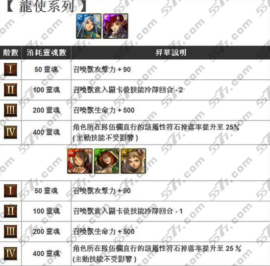 升华阶段四:角色所在队伍直行的该属性符石掉落几率提升到百分之二十五【且主动技能不受影响哦】