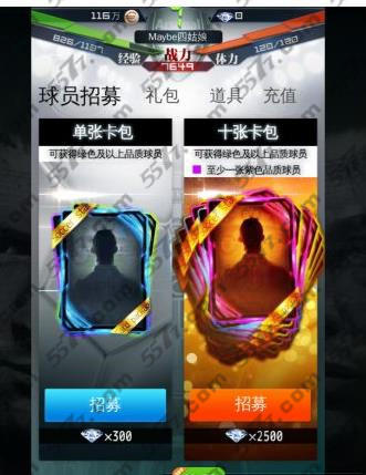 单卡招募:消耗300钻石获得1张球员卡牌,品质随机,一般质量比较一般,看大家人品啦~