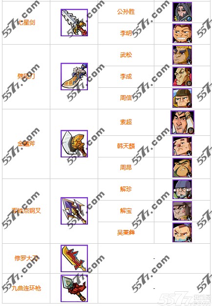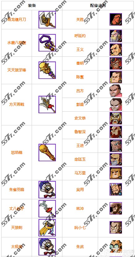 全民水浒紫色武器配缘大全: