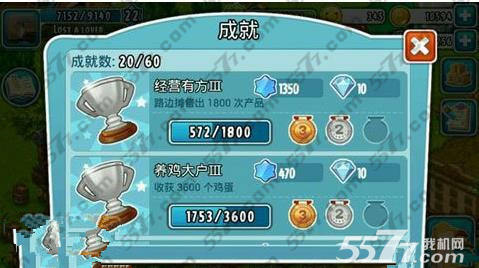 成就系统也是《全民农场》的一大特色,玩家点击自己的屋子时就能看到成就榜。成就榜的奖励为经验和钻石,每个成就的经验奖励不菲,想要快速冲级的玩家千万不能错过。