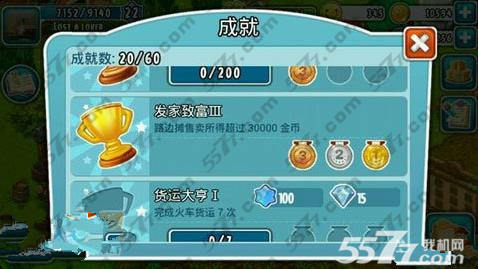 玩家只需要点击房子,就可以看到成就榜了,根据成就榜上的要求努力去完成直到符合条件,就可以领取到成就了。成就满足后,就可以获得巨额的经验和金币,是刷金币和刷经验的好方法。比如图片上的卡车嘟嘟,玩家需要使用小卡车去送货20次,之后就可以获得20个经验和1个钻石了。